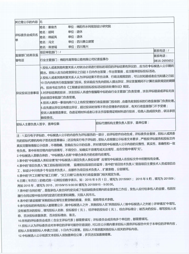 (S1 成萬(wàn)高速綿陽(yáng)繞城段橋梁病害處治項(xiàng)目設(shè)計(jì)(第二次)評(píng)標(biāo)結(jié)果公示(標(biāo)準(zhǔn)文本)