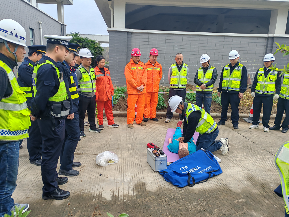 此次演練場景模擬S1成萬高速綿陽繞城段南服務(wù)區(qū)進行地下污水井清淤作業(yè)過程中,因有害氣體超標作業(yè)人員出現(xiàn)頭暈、昏迷險情?,F(xiàn)場發(fā)現(xiàn)險情后,值班人員第一時間上報,演練總指揮迅速啟動有限空間應(yīng)急預(yù)案,立即下達警戒、檢測、通風(fēng)、救援、醫(yī)療救護等指令。各應(yīng)急小組快速響應(yīng)、分工協(xié)作:警戒保衛(wèi)組迅速劃定危險區(qū)域,設(shè)置警示標識,疏散無關(guān)人員與車輛;環(huán)境監(jiān)測組使用氣體檢測儀對有限空間內(nèi)氧氣、有毒有害氣體濃度進行實時監(jiān)測;搶險救援組穿戴呼吸器、安全繩、應(yīng)急箱等專業(yè)裝備,在持續(xù)強制通風(fēng)后規(guī)范實施救援,快速將“被困人員”轉(zhuǎn)移至安全開闊地帶;醫(yī)療救護組立即開展心肺復(fù)蘇、人工呼吸等現(xiàn)場急救,并同步對接120急救中心,做好轉(zhuǎn)運準備。整個演練過程緊張有序、環(huán)節(jié)緊湊,各小組配合默契、處置規(guī)范,嚴格按照應(yīng)急預(yù)案完成全部救援流程,達到了預(yù)期演練效果。